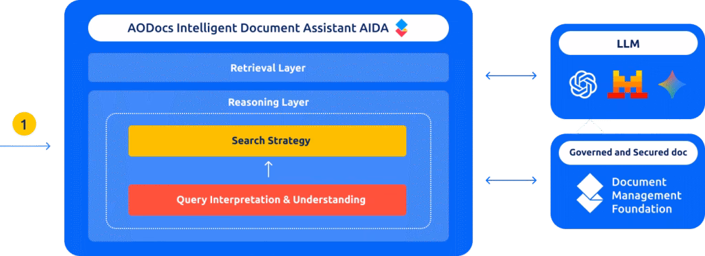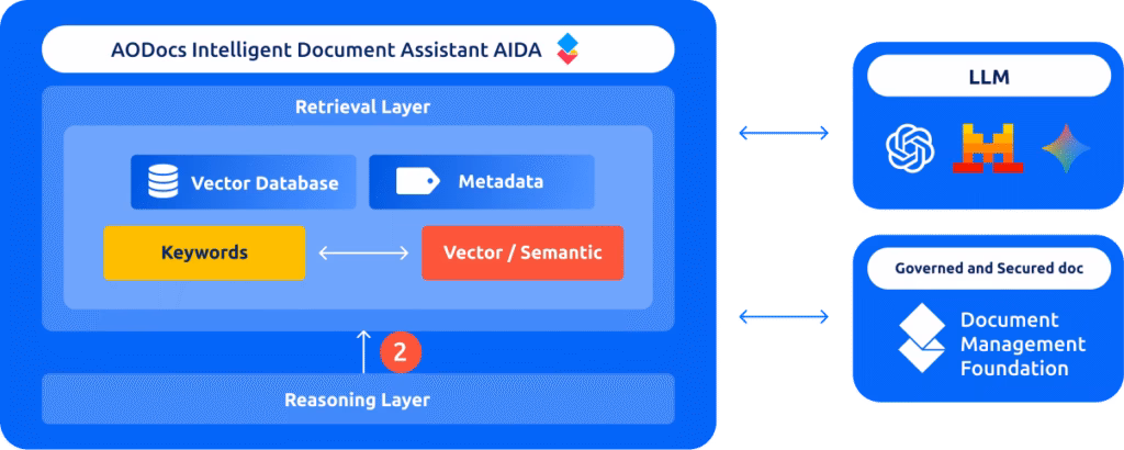 A Reranker Module then re-evaluates each retrieved chunk against the actual question, improving relevance beyond the initial search results. This brings to the fore the most suitable document chunks that align with the user’s purpose, ensuring that AIDA initiates its thought process with the most trustworthy and relevant data.